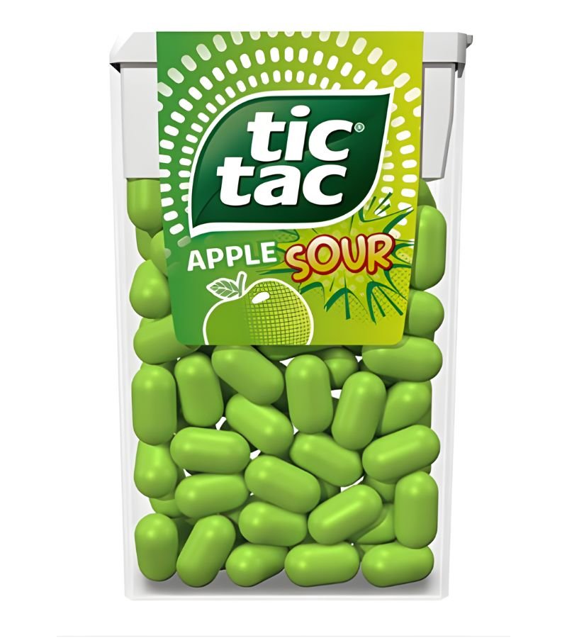 Ferrero Tic Tac Apple Sour 18g offers a burst of refreshing green apple flavor with a tangy sour twist. Each mini candy is crafted to deliver a sharp, fruity taste and a cooling mouthfeel, making it perfect for quick breath freshness anytime. The compact container is designed for easy pocket storage, ideal for personal use, retail counters, gifting, and travel-friendly consumption.