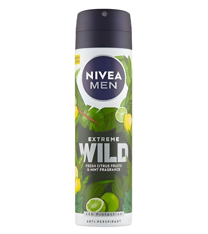 NIVEA Men Extreme Wild Fresh Citrus & Mint Deodorant Spray (150 ml) delivers powerful 48-hour protection with an energizing blend of citrus fruits and refreshing mint fragrance. It helps combat body odor and keeps you feeling fresh and confident throughout the day. Ideal for retail, wholesale, and export supply.