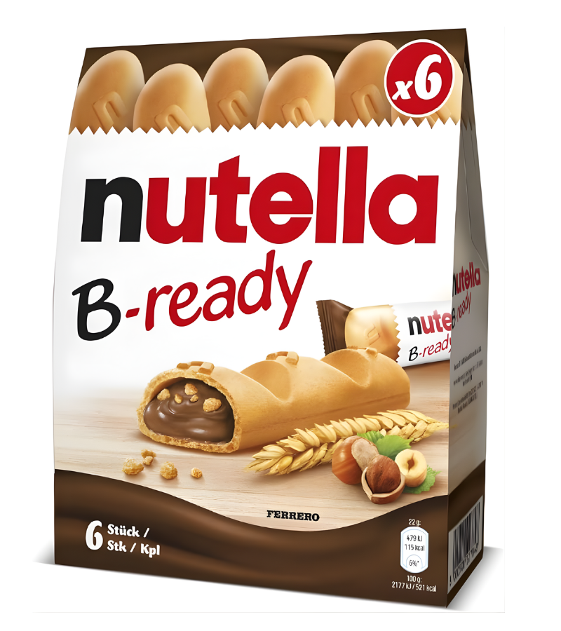 Nutella B-Ready Wafer Snack | Crispy Wafer Filled with Creamy Hazelnut Cocoa Spread | Pack of 6, 132g