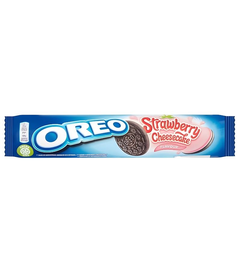 • Strawberry Cheesecake–flavoured crème sandwiched between classic Oreo chocolate biscuits