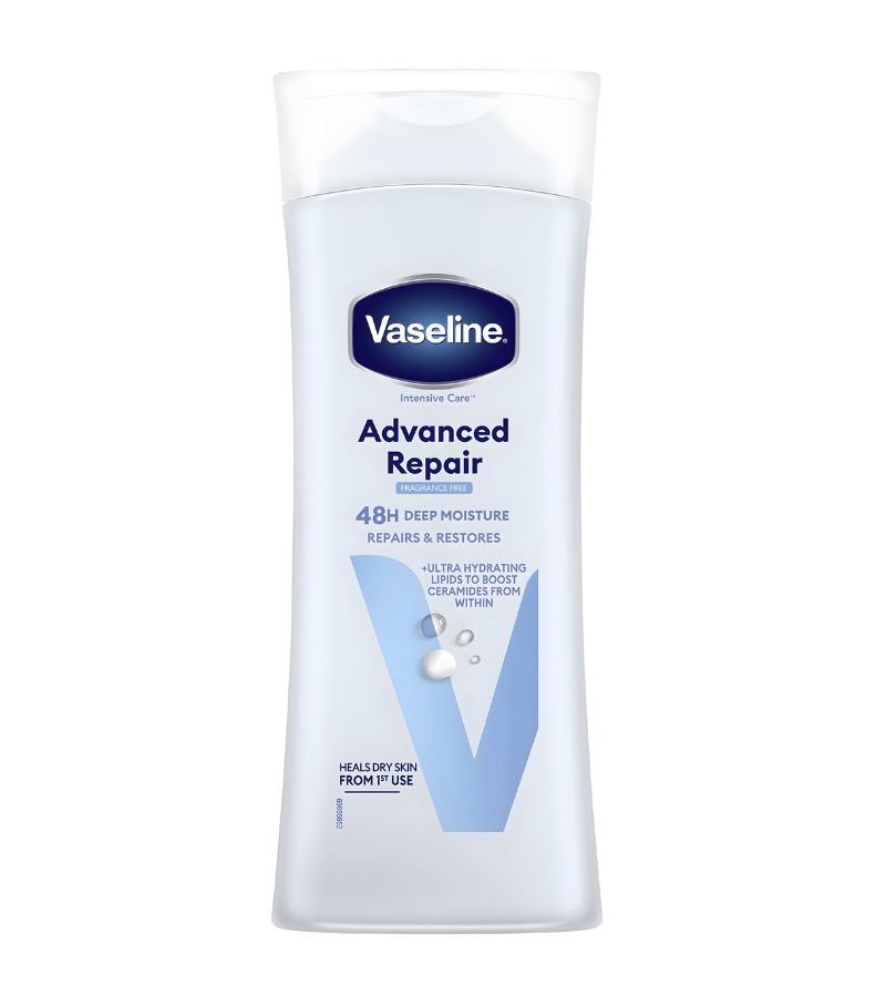 Vaseline Advanced Repair Lotion 200ml provides intensive moisture for very dry skin. Formulated with ultra-hydrating lipids and micro-droplets of Vaseline jelly, it helps restore the skin barrier and delivers deep hydration for up to 48 hours. Suitable for sensitive skin and ideal for those needing a fragrance-free repairing solution.