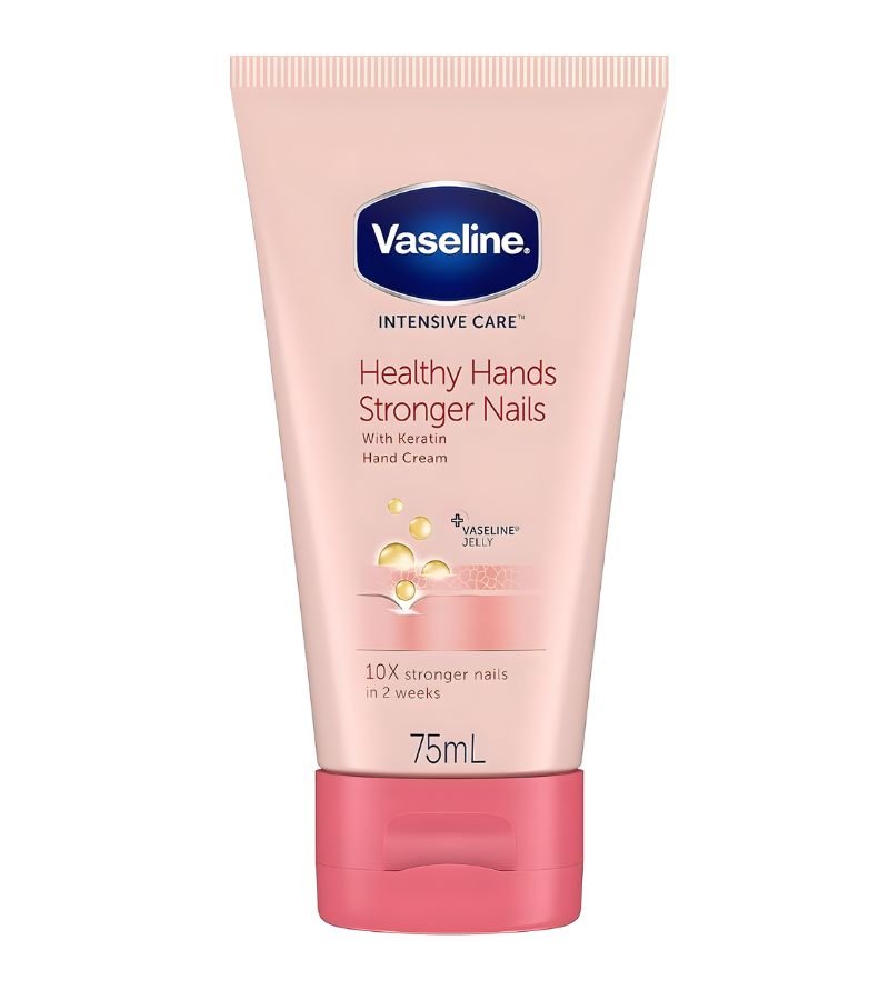 Vaseline Healthy Hands & Stronger Nails Hand Lotion is formulated with keratin and micro-droplets of Vaseline jelly to deeply nourish dry hands while reinforcing nail strength. It helps visibly improve softness and resilience, delivering long-lasting hydration to hands and cuticles. Ideal for daily use to maintain healthy, smooth skin and stronger nails.